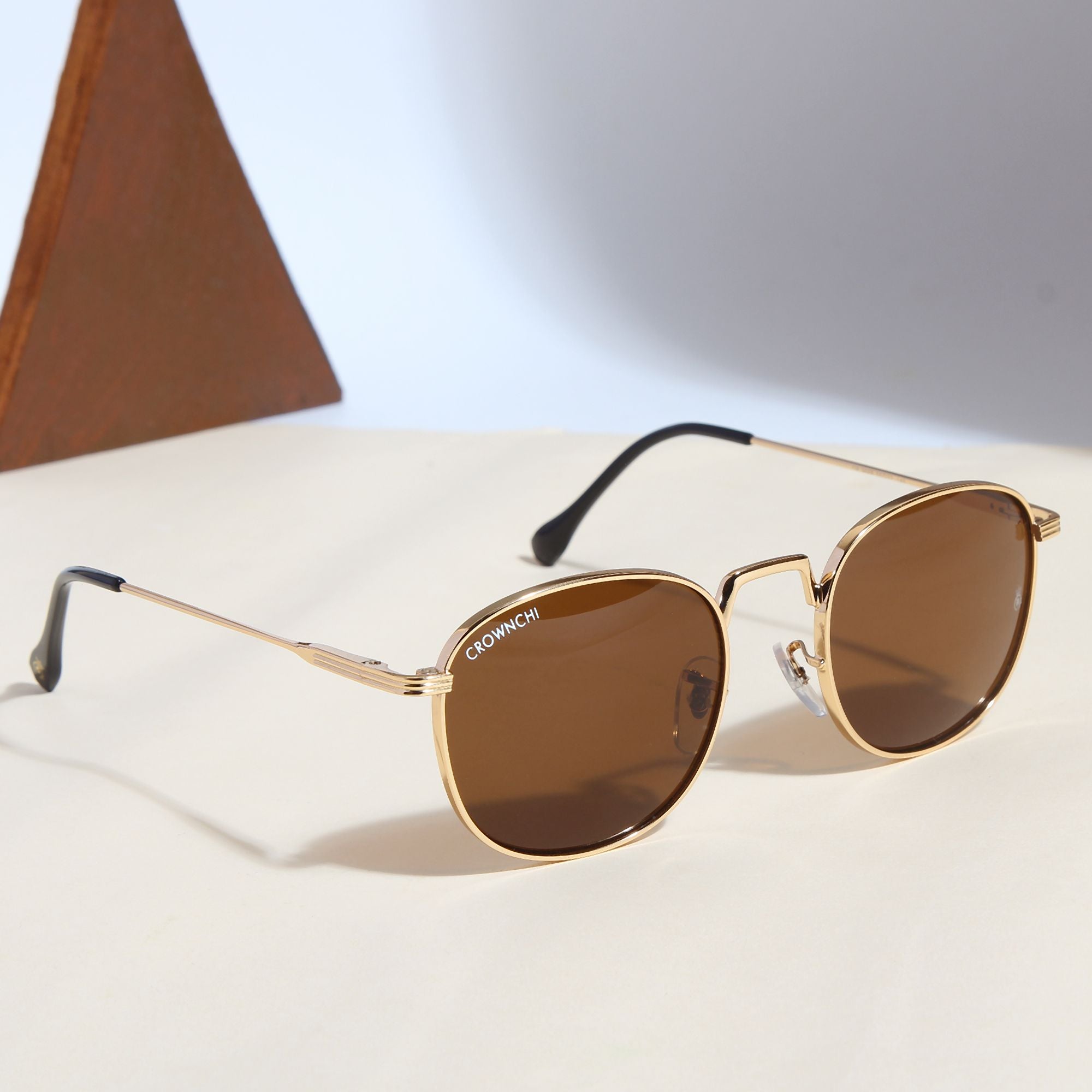 Crownchi Martin Gold Brown Round Edition Sunglasses